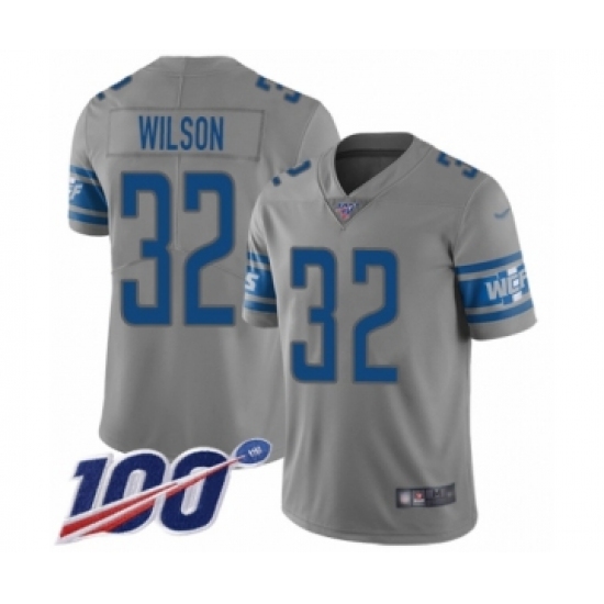 >Men's Detroit Lions #32 Tavon Wilson Limited Gray Inverted Legend 100th Season Football Jersey