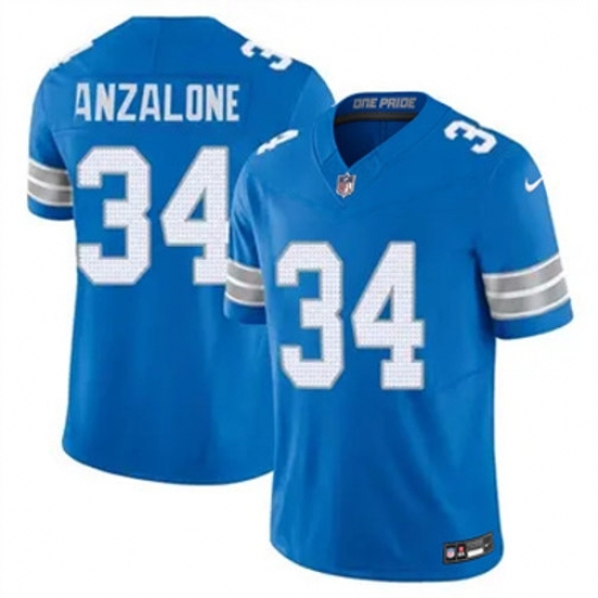 >Men's Detroit Lions #34 Alex Anzalone Blue Vapor Stitched Nike NFL Jersey