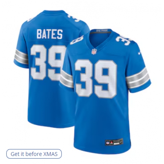 >Men's Detroit Lions #39 Jake Bates Nike Blue Team Game Jersey