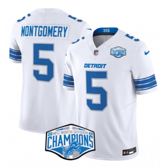 Men's Detroit Lions #5 David Montgomery White 2024 NFC North Champions F.U.S.E. Vapor Limited Stitched Jersey