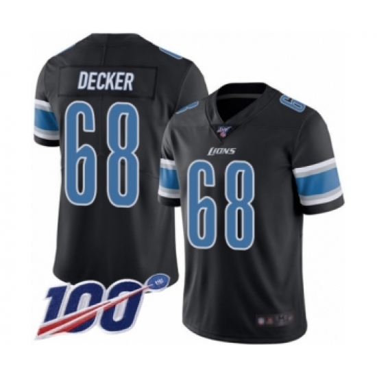 >Men's Detroit Lions #68 Taylor Decker Limited Black Rush Vapor Untouchable 100th Season Football Jersey