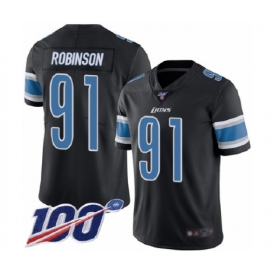 Men's Detroit Lions #91 A'Shawn Robinson Limited Black Rush Vapor Untouchable 100th Season Football Jersey