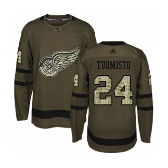 Men's Detroit Red Wings #24 Antti Tuomisto Authentic Green Salute to Service Hockey Jersey