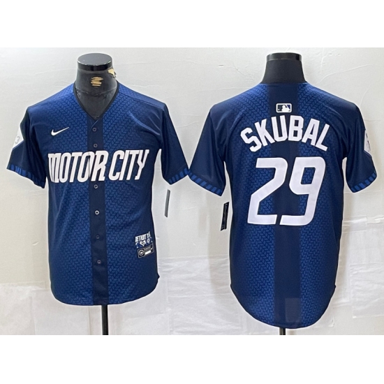 >Men's Detroit Tigers #29 Tarik Skubal 2024 Navy City Connect Cool Base Limited Stitched Jersey