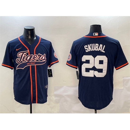 Men's Detroit Tigers #29 Tarik Skubal Navy With Cool Base Stitched Baseball Jersey