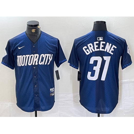 >Men's Detroit Tigers #31 Riley Greene 2024 Navy City Connect Cool Base Limited Stitched Jersey