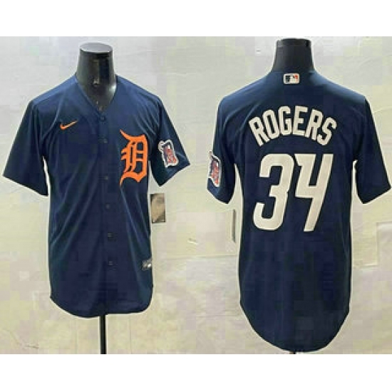 Men's Detroit Tigers #34 Jake Rogers Navy Alternate With Cool Base Stitched Jersey