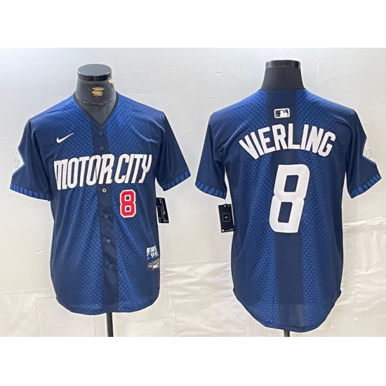Men's Detroit Tigers #8 Matt Vierling Number Navy 2024 City Connect Cool Base Limited Stitched Jersey