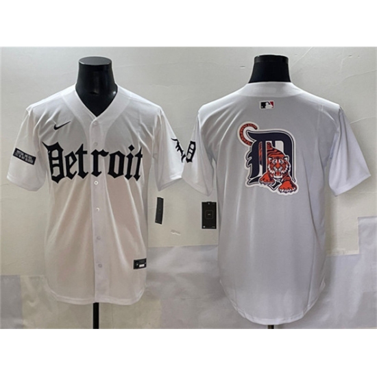 >Men's Detroit Tigers Team Big Logo White 'Motor Gothic Edition' Vapor Premier Limited Stitched Baseball Jersey