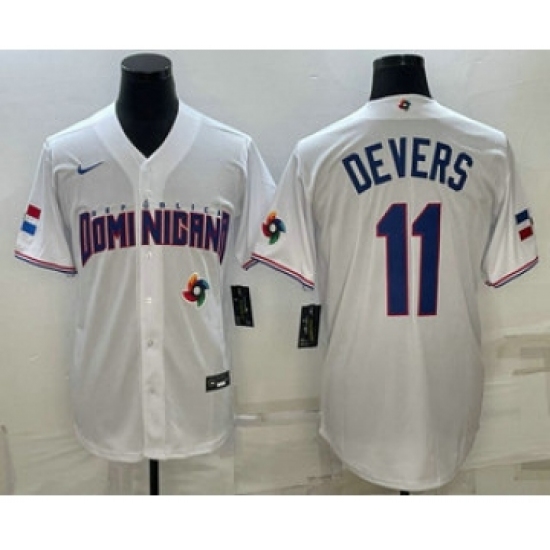 Men's Dominican Republic Baseball #11 Rafael Devers 2023 White World Baseball Classic Stitched Jersey