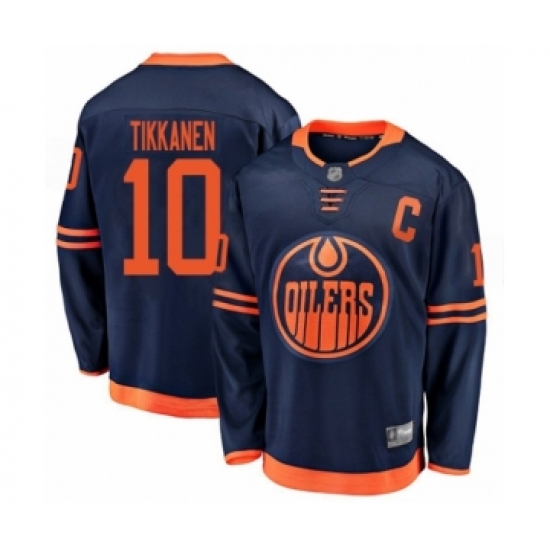 >Men's Edmonton Oilers #10 Esa Tikkanen Authentic Navy Blue Alternate Fanatics Branded Breakaway Hockey Jersey