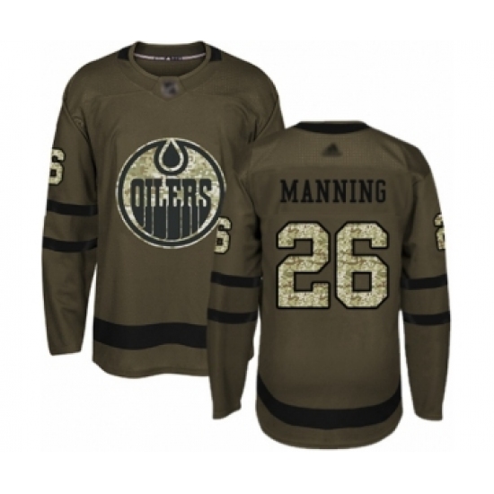 >Men's Edmonton Oilers #26 Brandon Manning Authentic Green Salute to Service Hockey Jersey