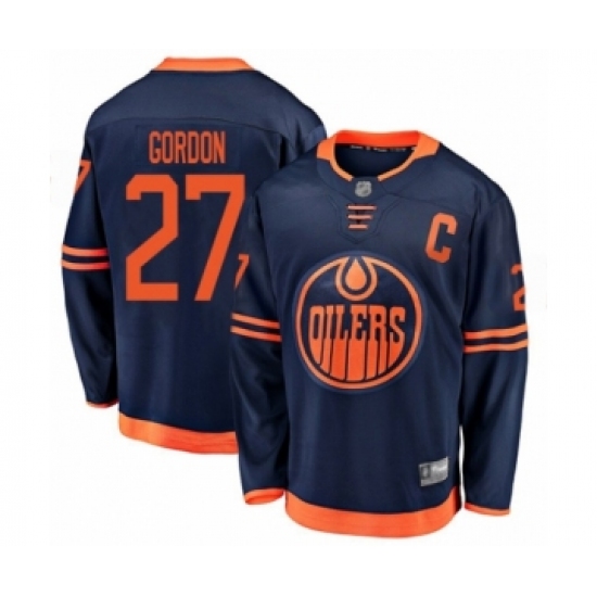 >Men's Edmonton Oilers #27 Boyd Gordon Authentic Navy Blue Alternate Fanatics Branded Breakaway Hockey Jersey