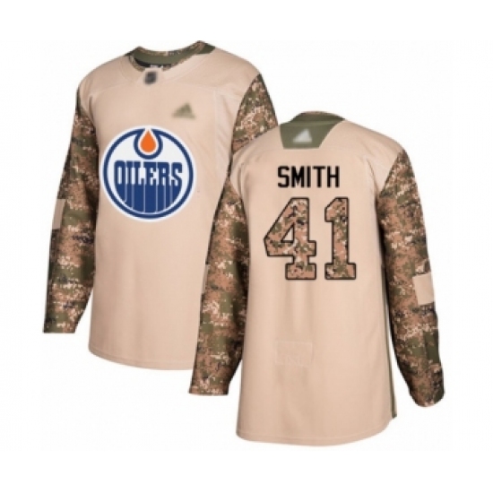 >Men's Edmonton Oilers #41 Mike Smith Authentic Camo Veterans Day Practice Hockey Jersey