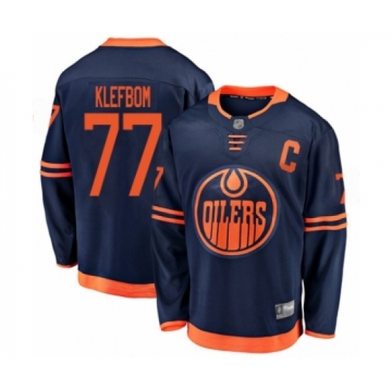 Men's Edmonton Oilers #77 Oscar Klefbom Authentic Navy Blue Alternate Fanatics Branded Breakaway Hockey Jersey