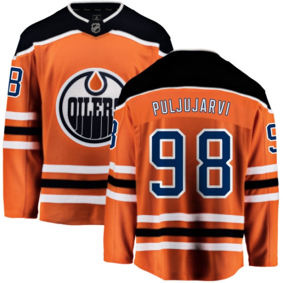Home>NHL>Edmonton Oilers>Jesse Puljujarvi>Men's Edmonton Oilers #98 Jesse Puljujarvi Fanatics Branded Orange Home Breakaway NHL Jersey