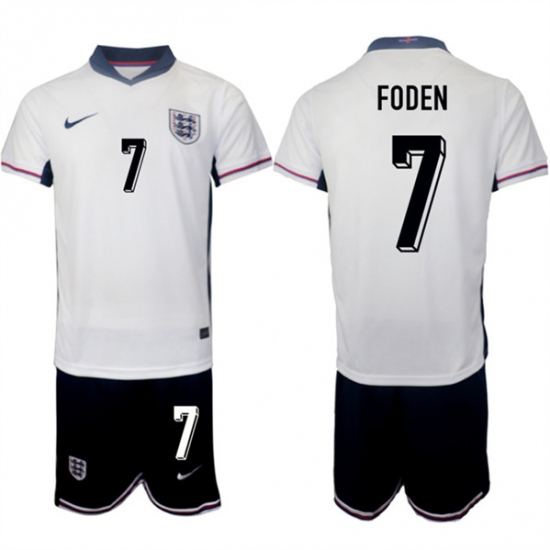 >Men's England #7 Phil Foden 2024-25 White Home Soccer Jersey Suit