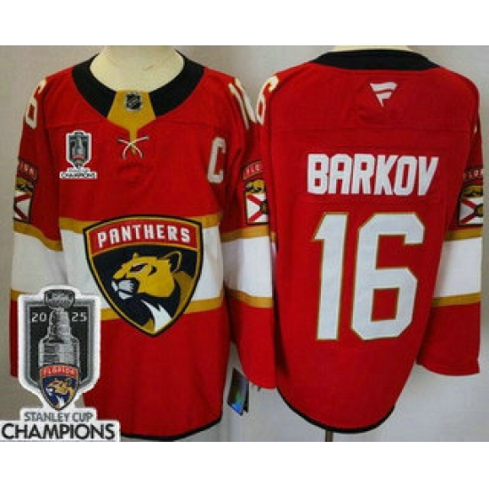 Men's Florida Panthers #16 Aleksander Barkov Red 2025 Stanley Cup Champions Authentic Jersey