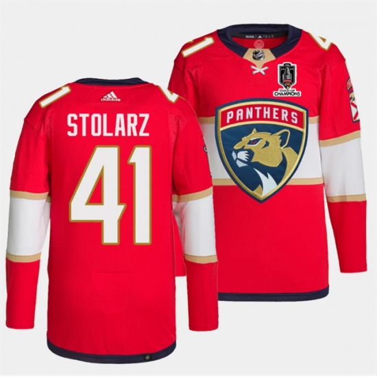 >Men's Florida Panthers #41 Anthony Stolarz Red Home 2024 Stanley Cup Champions Stitched Jersey