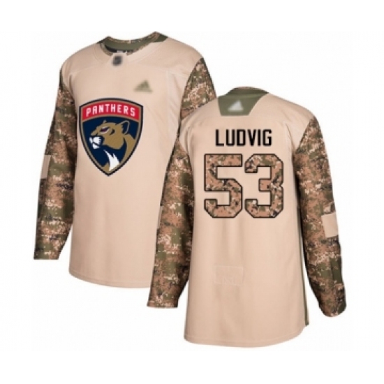 Men's Florida Panthers #53 John Ludvig Authentic Camo Veterans Day Practice Hockey Jersey