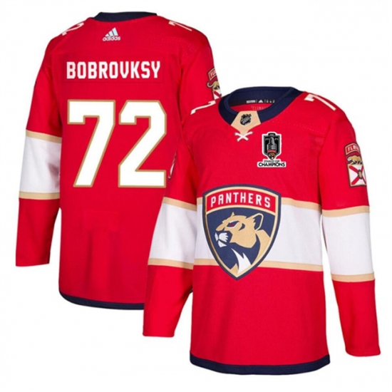 >Men's Florida Panthers #72 Sergei Bobrovsky Red Home 2024 Stanley Cup Champions Stitched Jersey