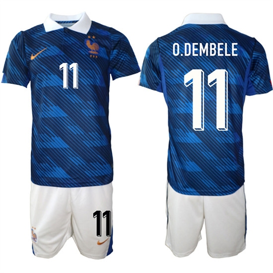 Men's France #11 Ousmane Dembélé Blue 2024-25 Home Soccer Jersey Suit