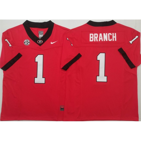 >Men's Georgia Bulldogs #1 Zachariah Branch Red 2025 F.U.S.E. Stitched Jersey