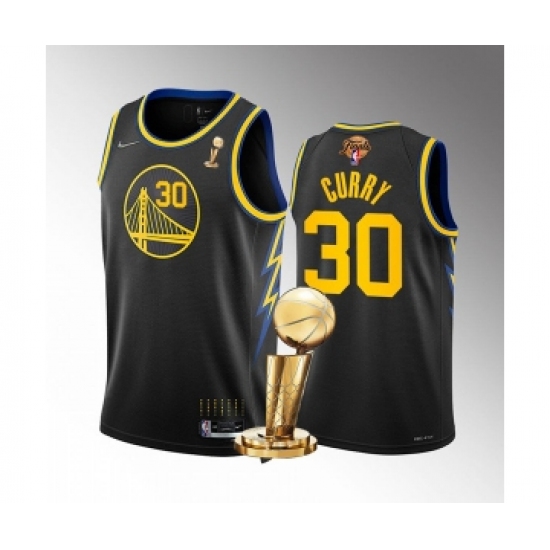 Men's Golden State Warriors #30 Stephen Curry Black 2022 NBA Finals Champions Stitched Jersey