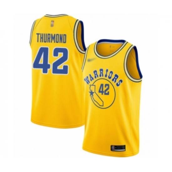 Men's Golden State Warriors #42 Nate Thurmond Authentic Gold Hardwood Classics Basketball Jersey - The City Classic Edition