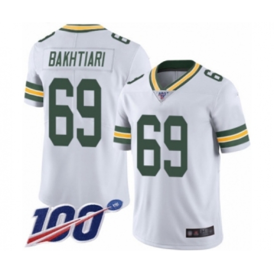 >Men's Green Bay Packers #69 David Bakhtiari White Vapor Untouchable Limited Player 100th Season Football Jersey