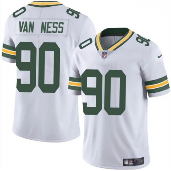 >Men's Green Bay Packers #90 Lukas Van Ness White Vapor Untouchable Limited Stitched Jersey