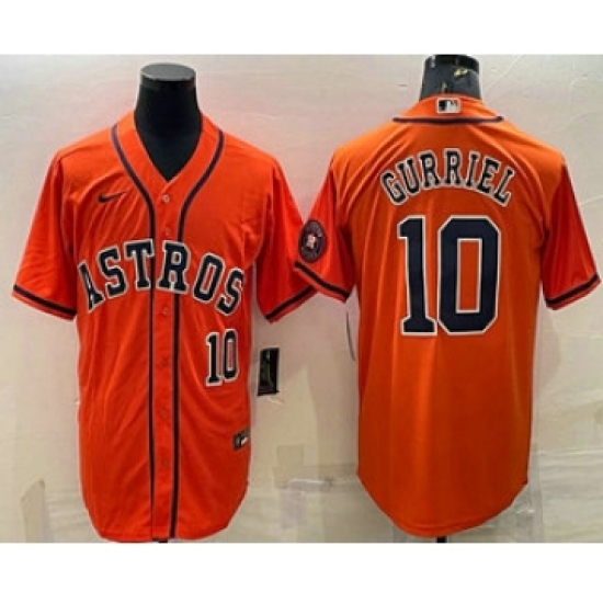 Men's Houston Astros #10 Yuli Gurriel Number Orange With Patch Stitched MLB Cool Base Nike Jersey