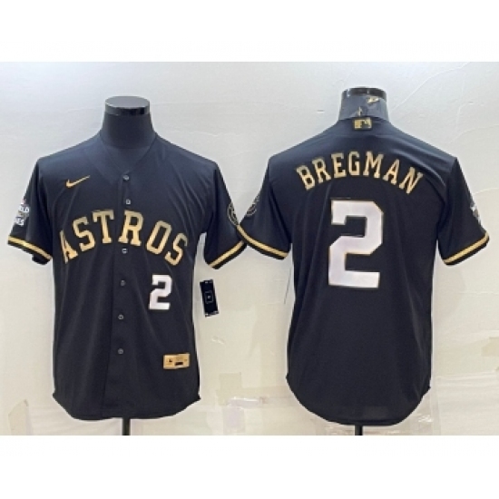 Men's Houston Astros #2 Alex Bregman Number Black Gold 2022 World Series Stitched Baseball Jersey