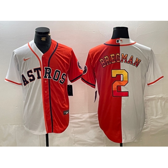 Men's Houston Astros #2 Alex Bregman White Orange Split Stitched Baseball Jersey