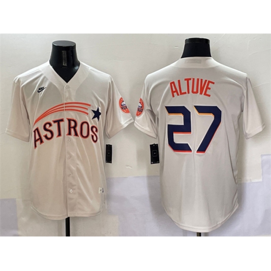 Men's Houston Astros #27 Jose Altuve Cream Throwback Cooperstown Collection Limited Stitched Baseball Jersey