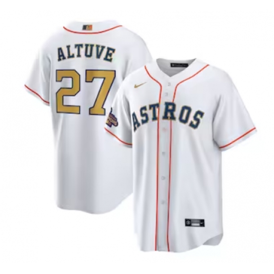 Men's Houston Astros #27 Jose Altuve Nike White Gold 2023 Gold Collection Replica Player Jersey