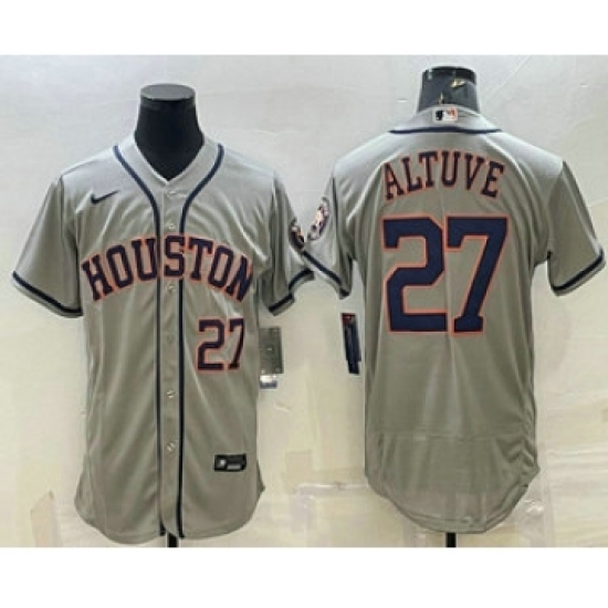Men's Houston Astros #27 Jose Altuve Number Grey Stitched MLB Flex Base Nike Jersey