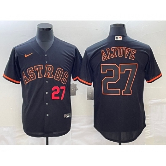 Men's Houston Astros #27 Jose Altuve Number Lights Out Black Fashion Stitched MLB Cool Base Nike Jersey1