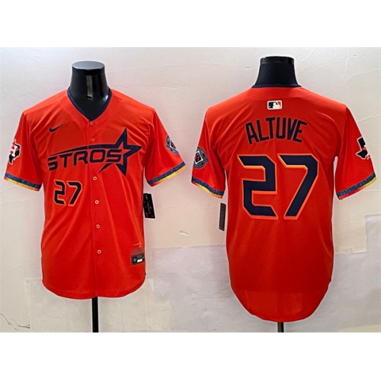 >Men's Houston Astros #27 Jose Altuve Orange 2025 City Connect With Texas Limited Stitched Baseball Jersey