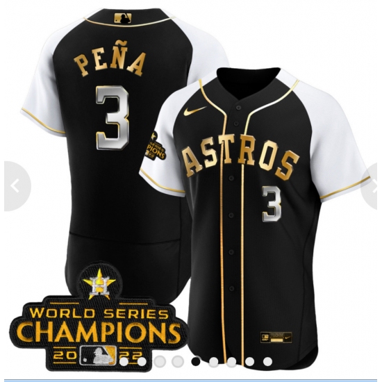 Men's Houston Astros #3 Jeremy Pena 2023 Black Serise Champions Base Stitched Jerseys