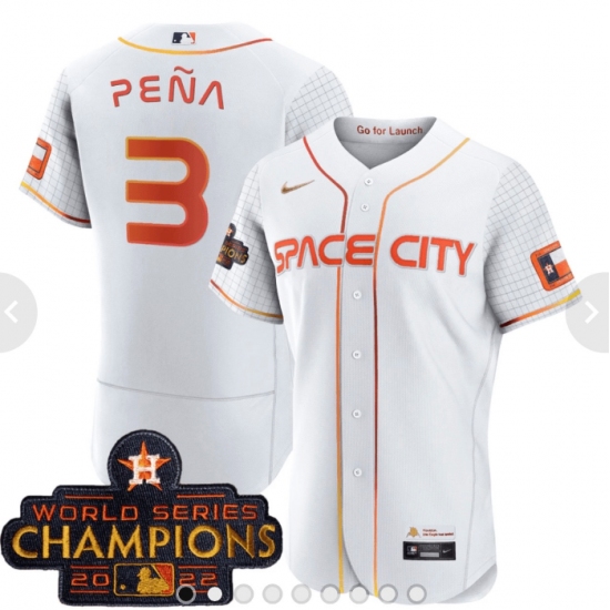 Men's Houston Astros #3 Jeremy Pena 2023 White Serise Champions Base Stitched Jerseys