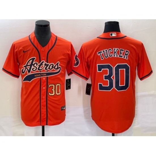 Men's Houston Astros #30 Kyle Tucker Number Orange Cool Base Stitched Baseball Jersey