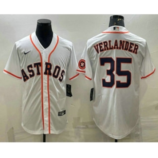 >Men's Houston Astros #35 Justin Verlander White With Patch Stitched MLB Cool Base Nike Jersey