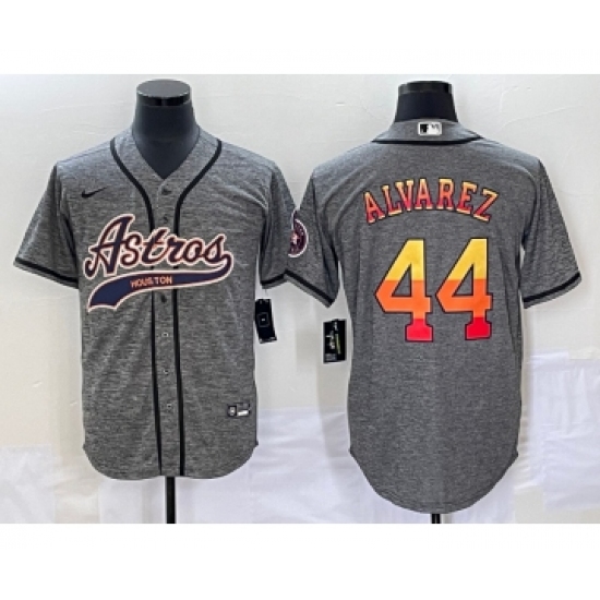 Men's Houston Astros #44 Yordan Alvarez Grey Gridiron Cool Base Stitched Baseball Jersey