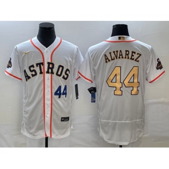 Men's Houston Astros #44 Yordan Alvarez Number 2023 White Gold World Serise Champions Flex Base Stitched Jersey