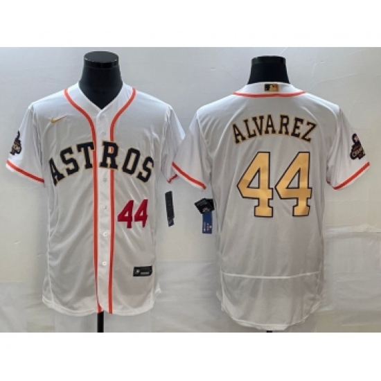 Men's Houston Astros #44 Yordan Alvarez Number 2023 White Gold World Serise Champions Flex Base Stitched Jersey
