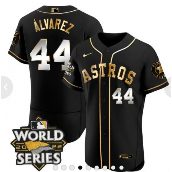 Men's Houston Astros #44 Yordan Alvarez Number Black 2022 World Series patches Jersey