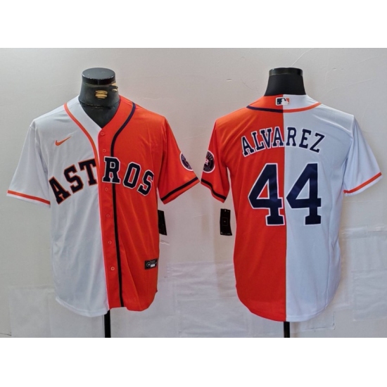 Men's Houston Astros #44 Yordan Alvarez White Orange Split Stitched Baseball Jersey