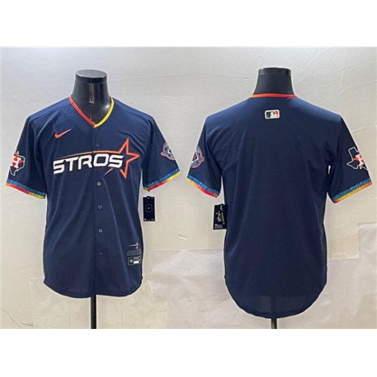 Men's Houston Astros Blank Navy 2025 City Connect With Texas Patch Limited Stitched Baseball Jersey