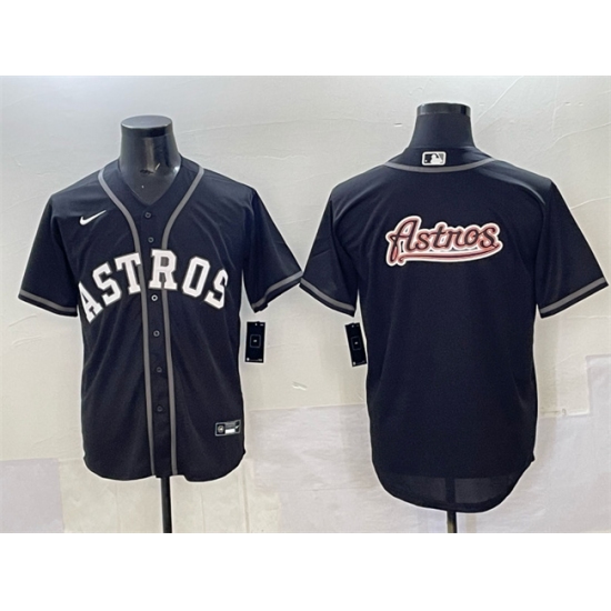 >Men's Houston Astros Team Big Logo Black Lights Out Limited Stitched Baseball Jersey